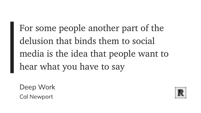 I want to be the kind of person who says, “I’m not on social media”, but instead I’m the kind of person who says “I want to be the kind of person who says, ‘I’m not on social media.'”